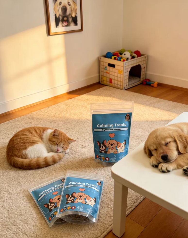 Is your pet prone to situational stress or digestive upset? Our Calming Functional Treats are designed to help dogs and cats navigate daily challenges. Whether it's loud noises, travel, or separation, these treats offer a natural way to encourage a settled state while rewarding them with flavors they crave.